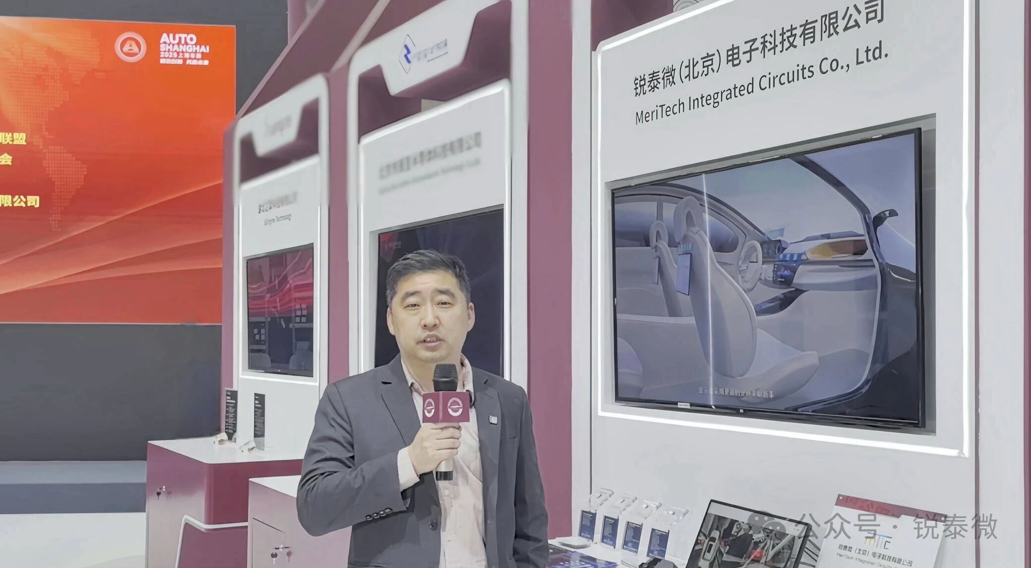 在展会现场,锐泰微首席营销官(CMO)王浩接受媒体采访并介绍C³ Lync SerDes芯片系列产品。他表示“SerDes 产品作为高级驾驶辅助系统(ADAS)与自动驾驶座舱的核心组件,在智能汽车的信号传输领域发挥着关键作用。锐泰微研发的 C³ Lync SerDes芯片,成功构建起高效的数据传输链路,实现了从传感器到ADAS ECU,以及座舱 ECU 到显示屏的高速无压缩数据传输。本次展出的DEMO系统,直观呈现了从摄像头采集到屏幕显示的流畅数据传输过程,充分展现了产品的卓越性能。C³ Lync SerDes芯片所有IP 核均为自主研发,完全实现了对海外同类竞品的国产化替代,有力填补了国内相关领域的技术空白。我们希望通过本次车展,让更多行业厂商了解锐泰微的品牌理念与创新成果。诚挚邀请大家莅临展位,深入交流探讨。最后,祝愿中国半导体行业蒸蒸日上,迈向新的发展高度!”